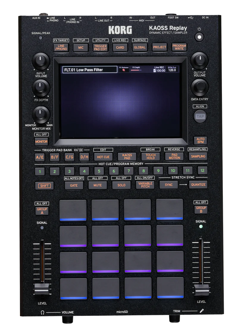 - Paleta diversificada de 127 novos KAOSS FX, incluindo atrasos, filtros, reverbs e efeitos de modulação